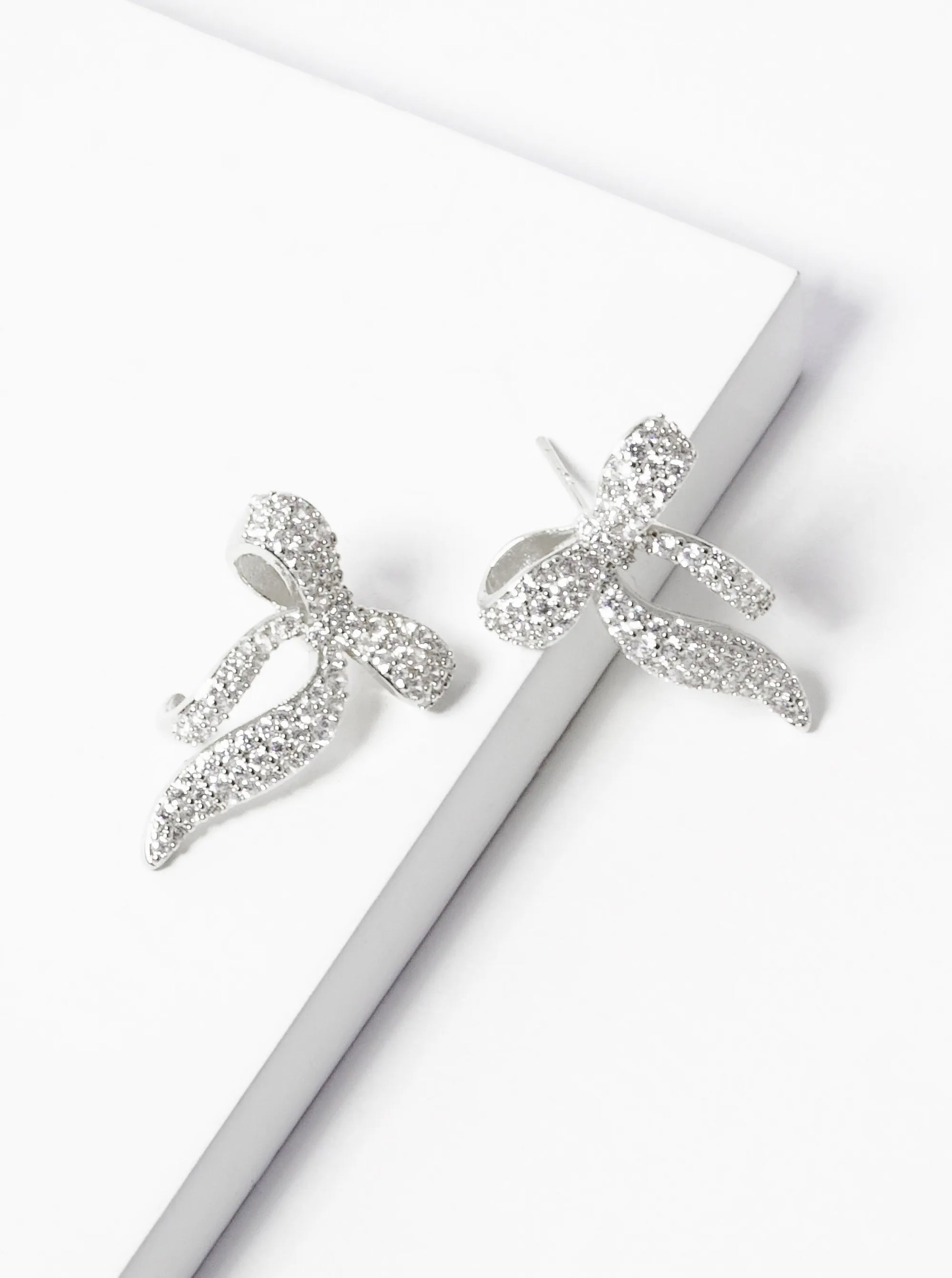 These Cubic Zirconia Pave Ribbon-shaped Stud Earrings Are Perfect For Any Business Wardrobe. The Modern Design And Classic Texture Allow For A Timeless Feel No Matter The Season. They Are Making Them A Must-have Item That Will Fly Off Your Shelves!