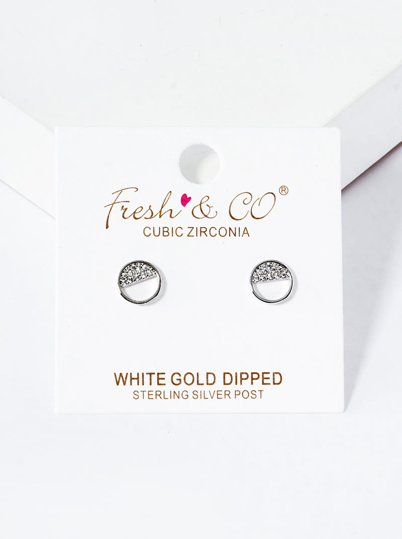 White Gold Dipped CZ Pave Round Post Stud Earrings