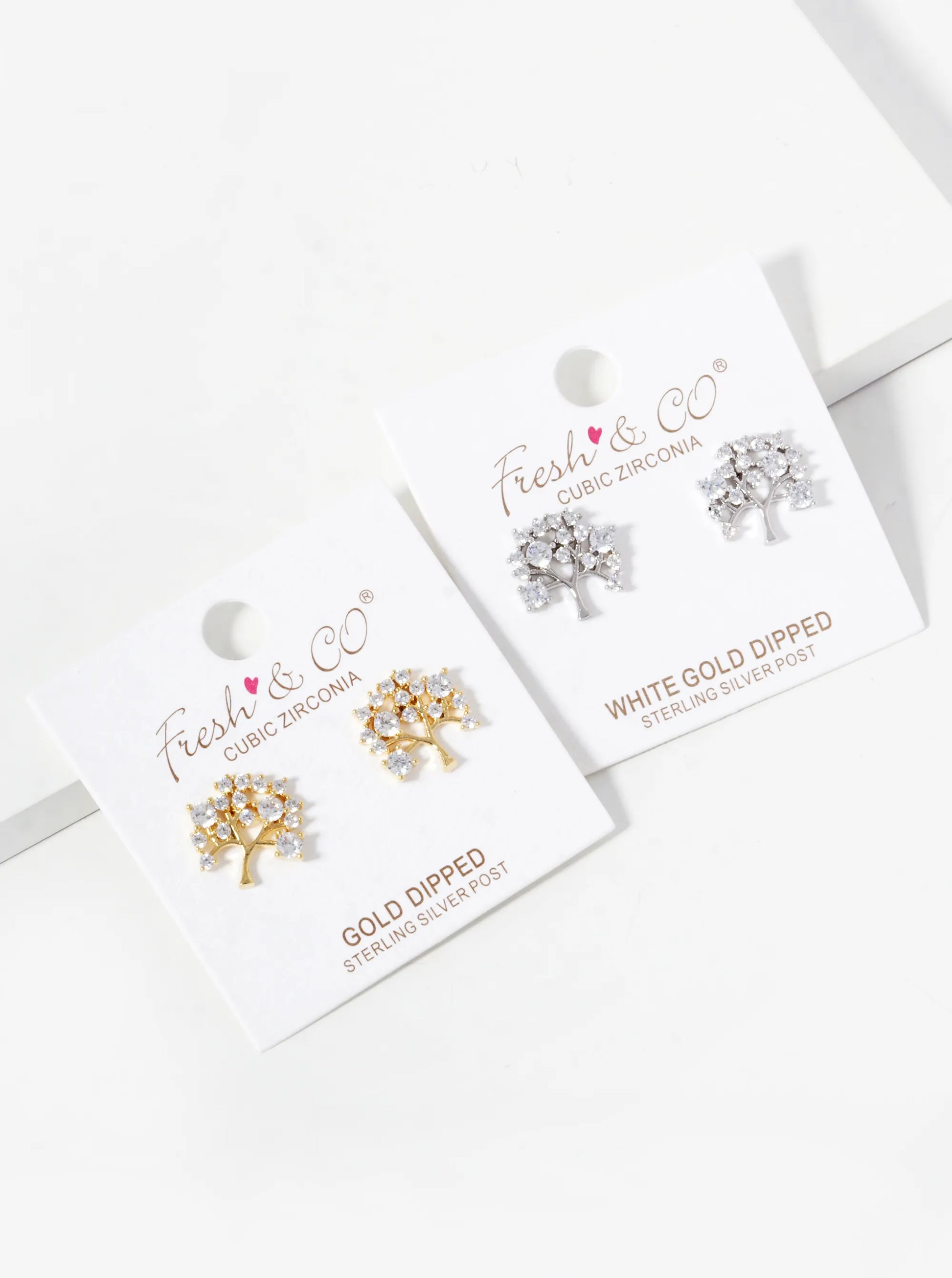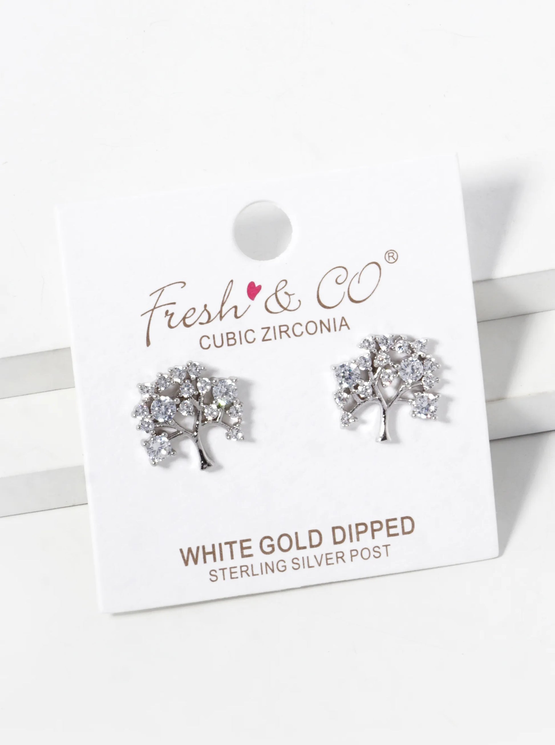 White Gold Dipped CZ Tree Of Life Stud Earrings