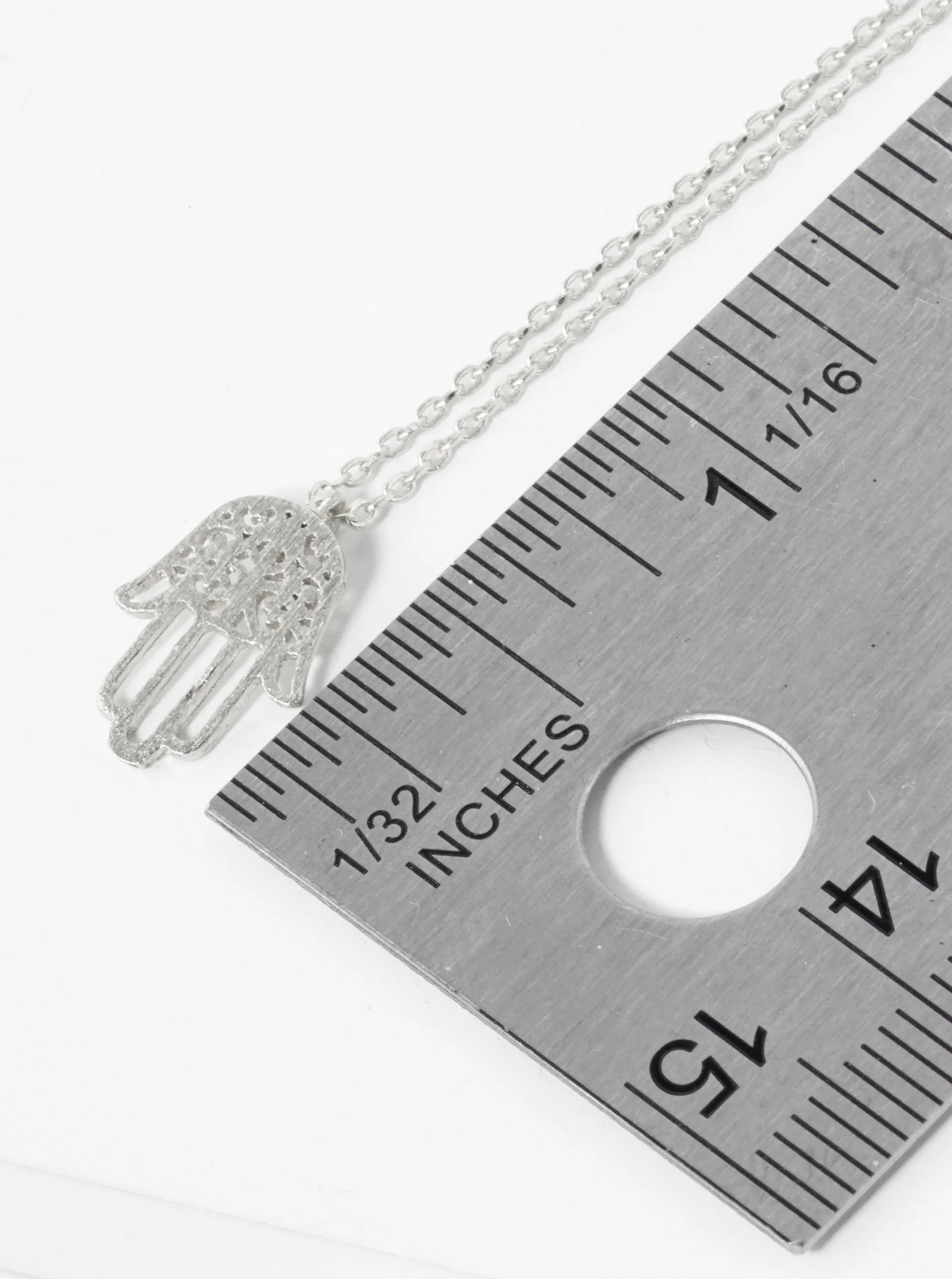 White Gold Dipped Filigree Hamsa Pendant Necklace