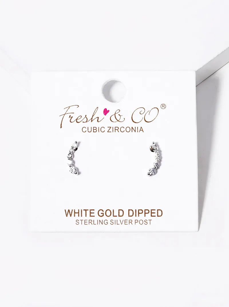 White Gold Dipped Graduated Five CZ Stones Stud Earrings