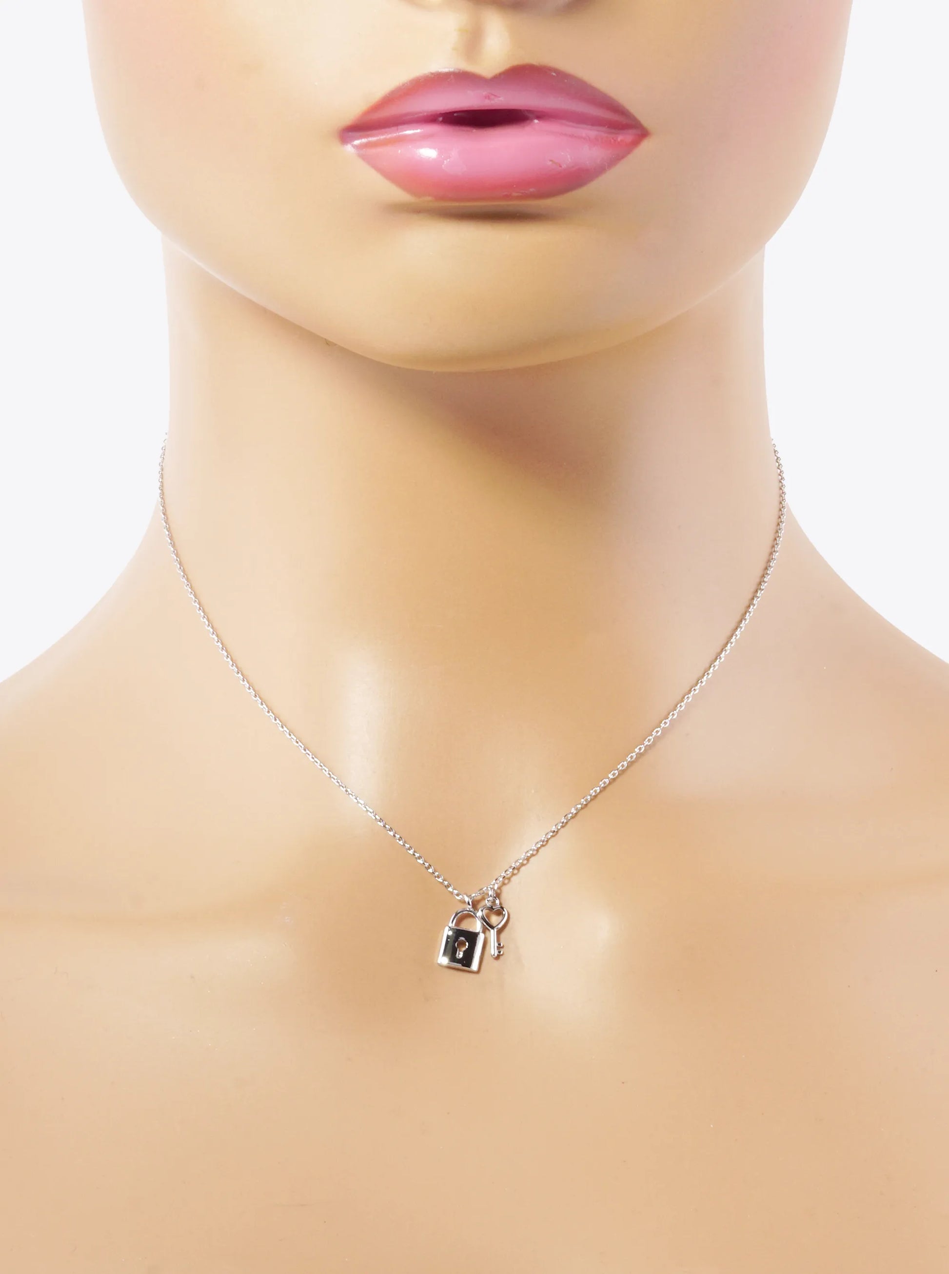 White Gold Dipped Heart Shaped Key And Padlock Pendant Necklace