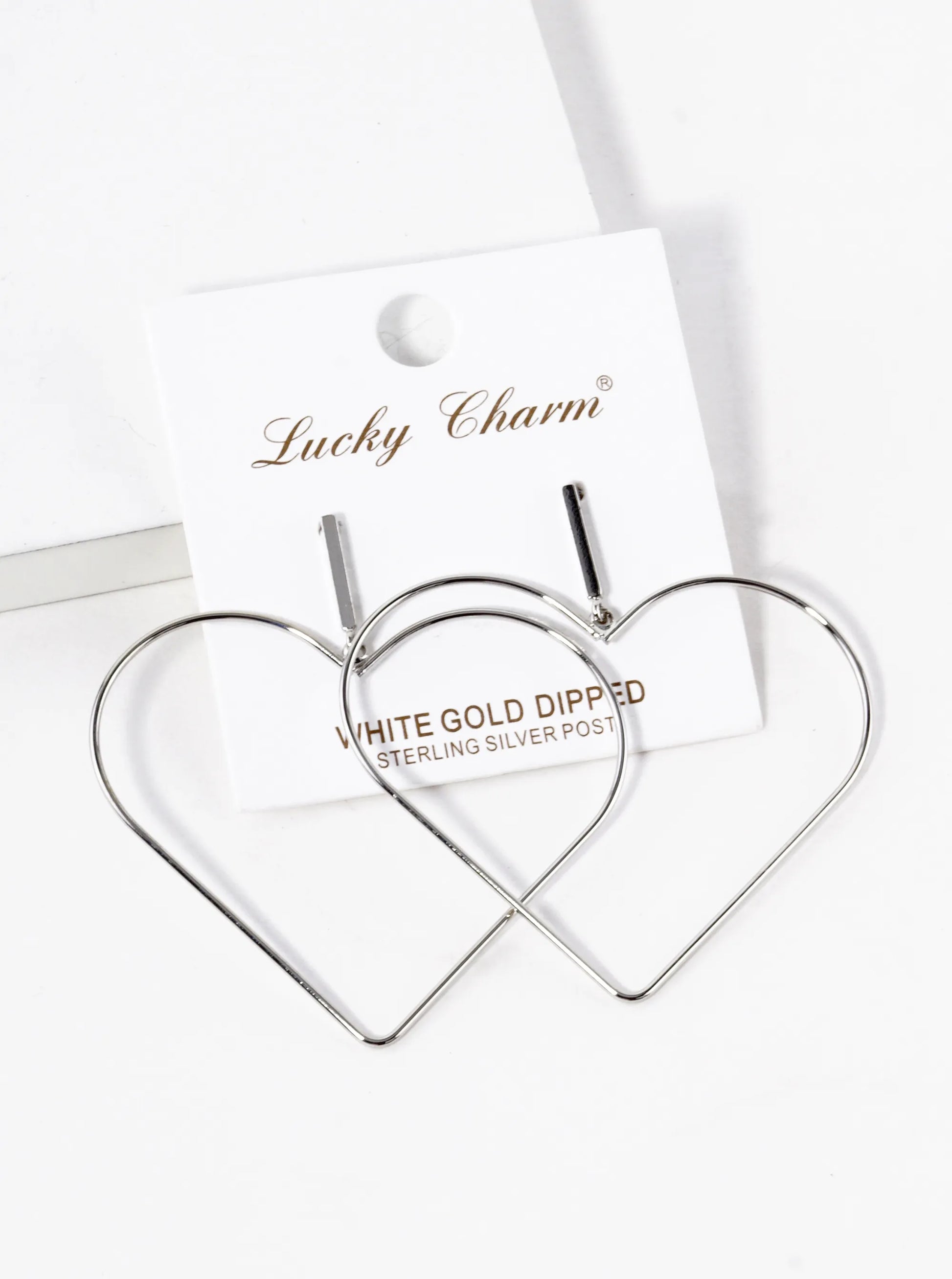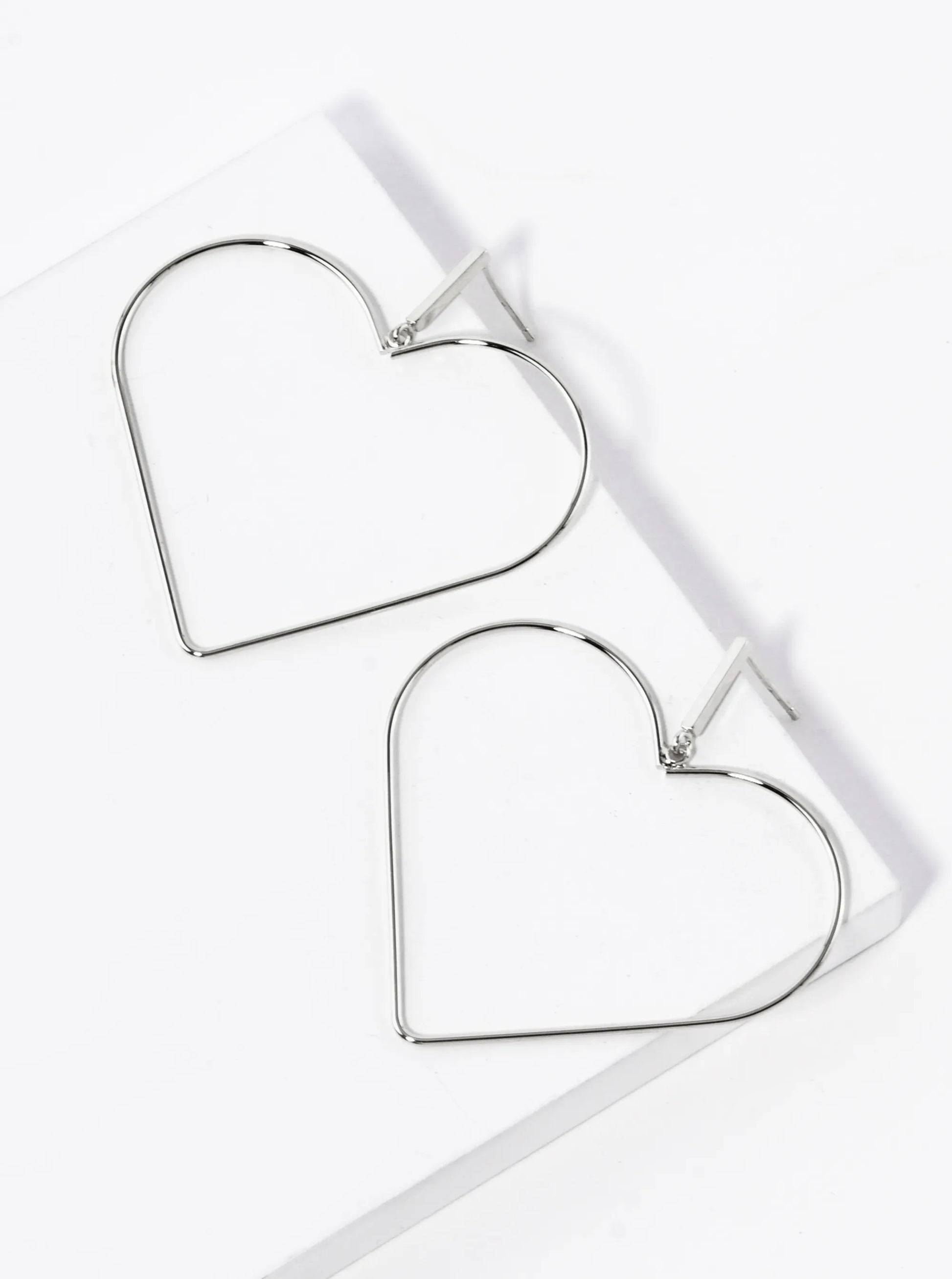 White Gold Dipped Large Wire Heart Drop Dangle Post Earrings