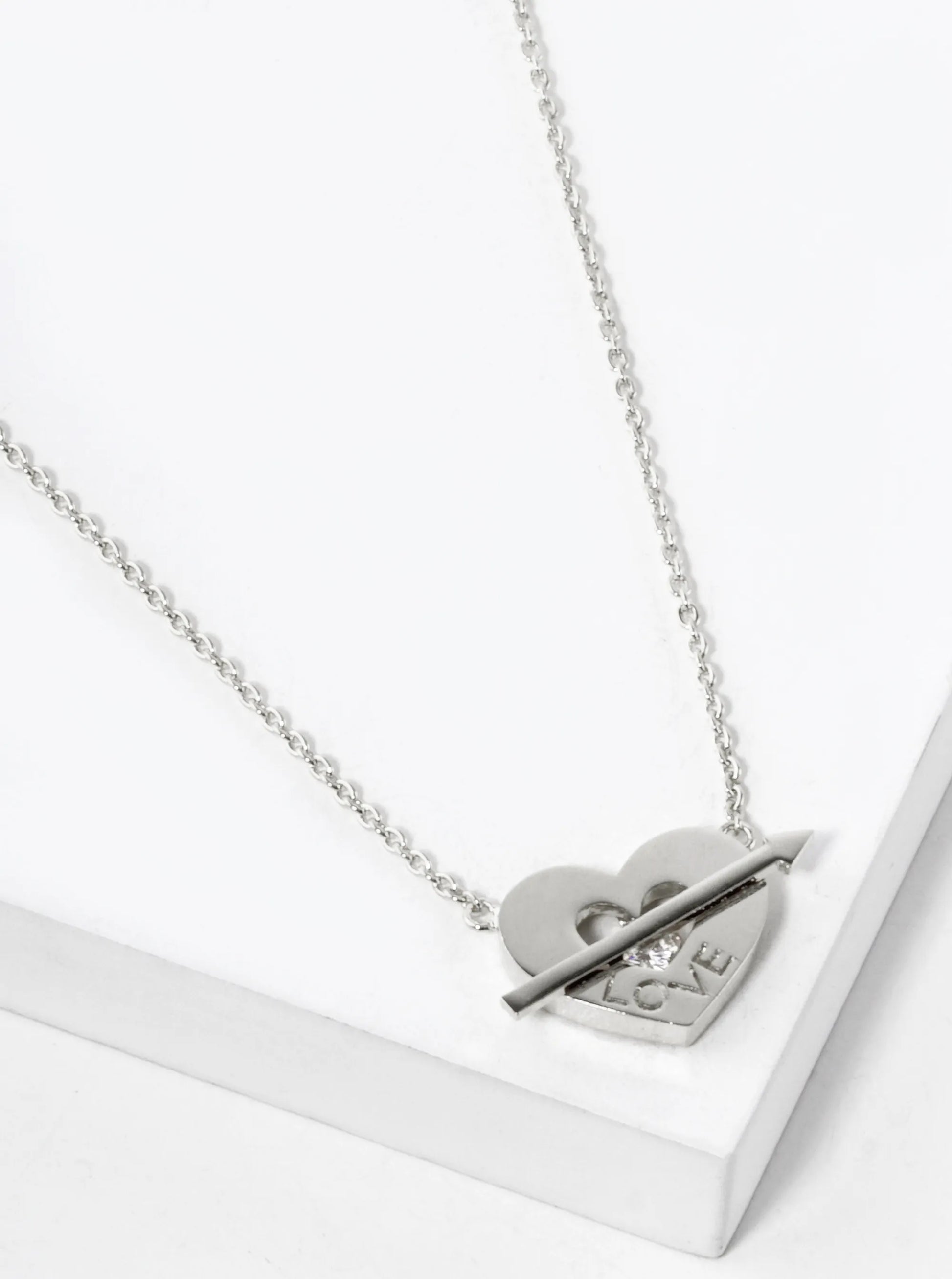 White Gold Dipped Love Engraved Cupids Heart Pendant Necklace