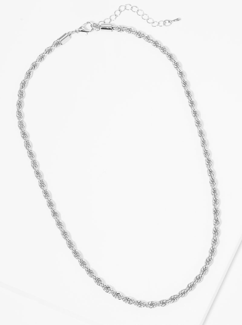 White Gold Dipped Metal 4mm Rope Chain Necklace