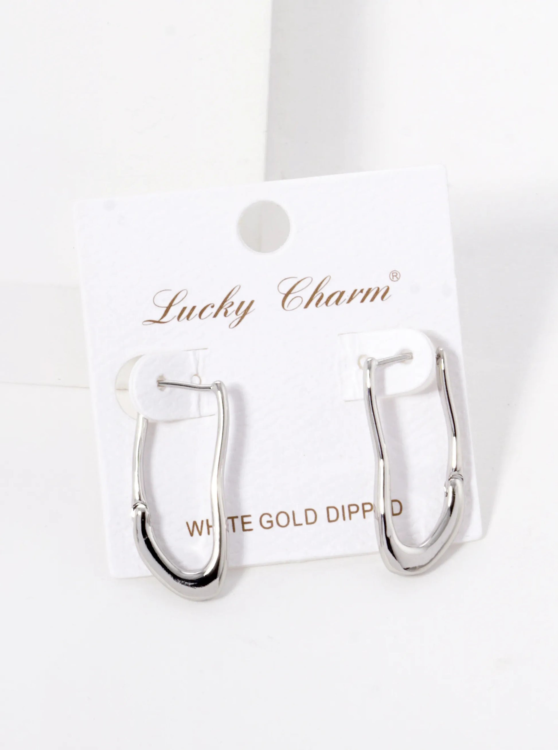 White Gold Dipped Organic Shape 28mm Hoop Earrings