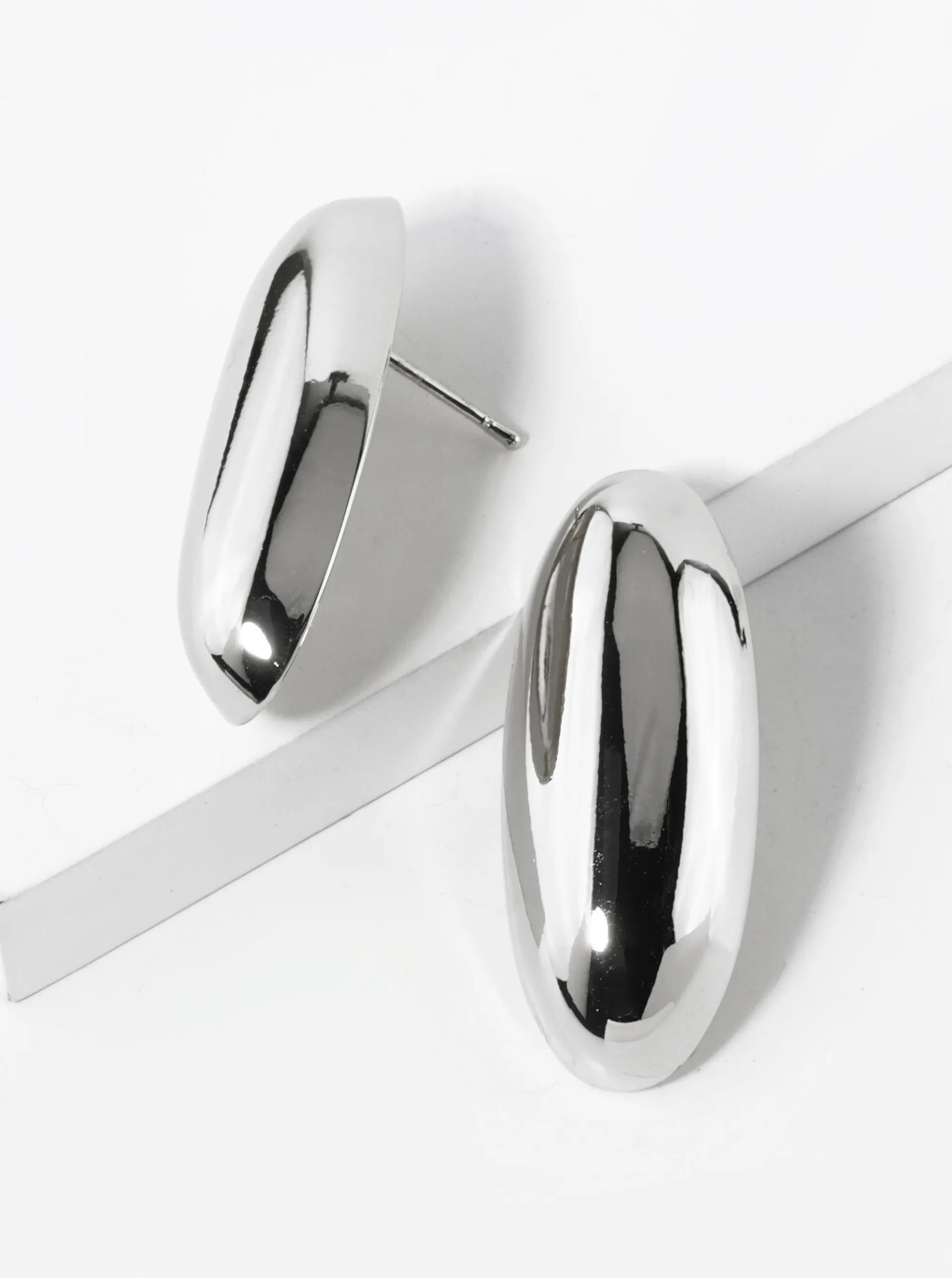 White Gold Dipped Oval Shape Stud Earrings