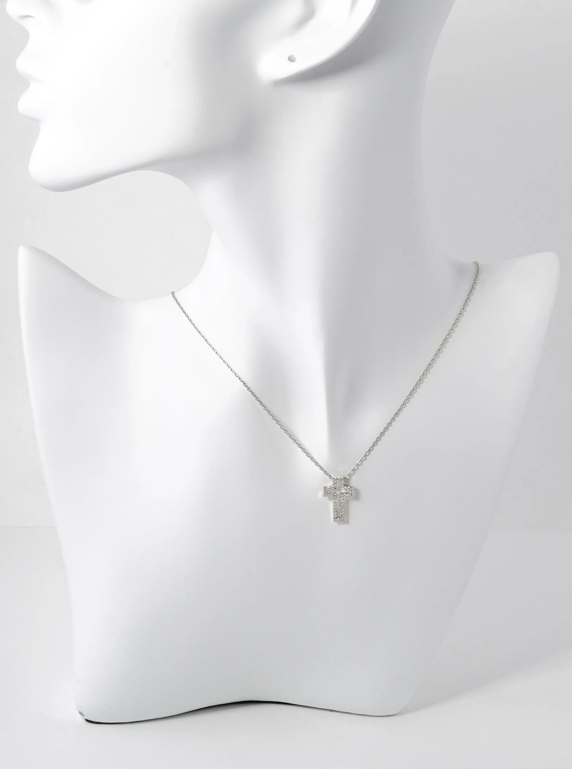 White Gold Dipped Pave Cubic Zirconia 16mm Cross Pendant Necklace