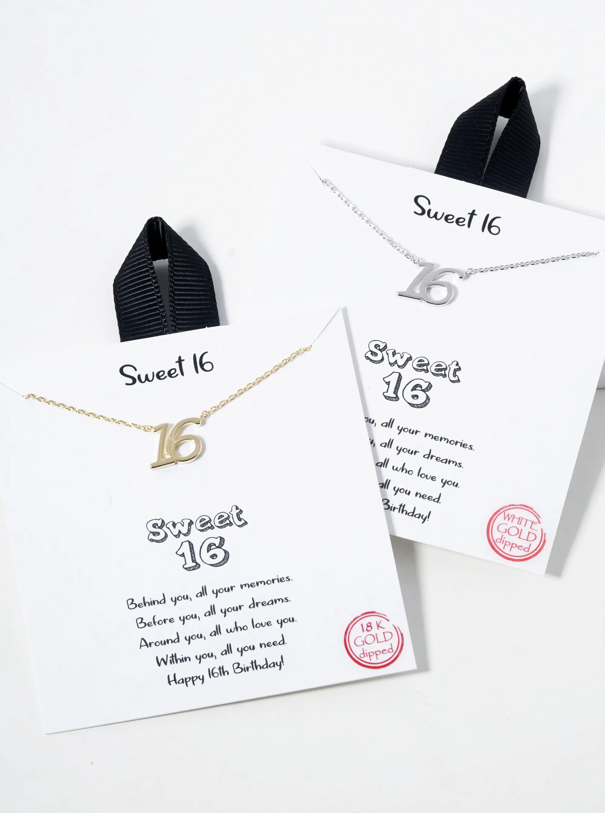 White Gold Dipped Sweet 16 Pendant Necklace
