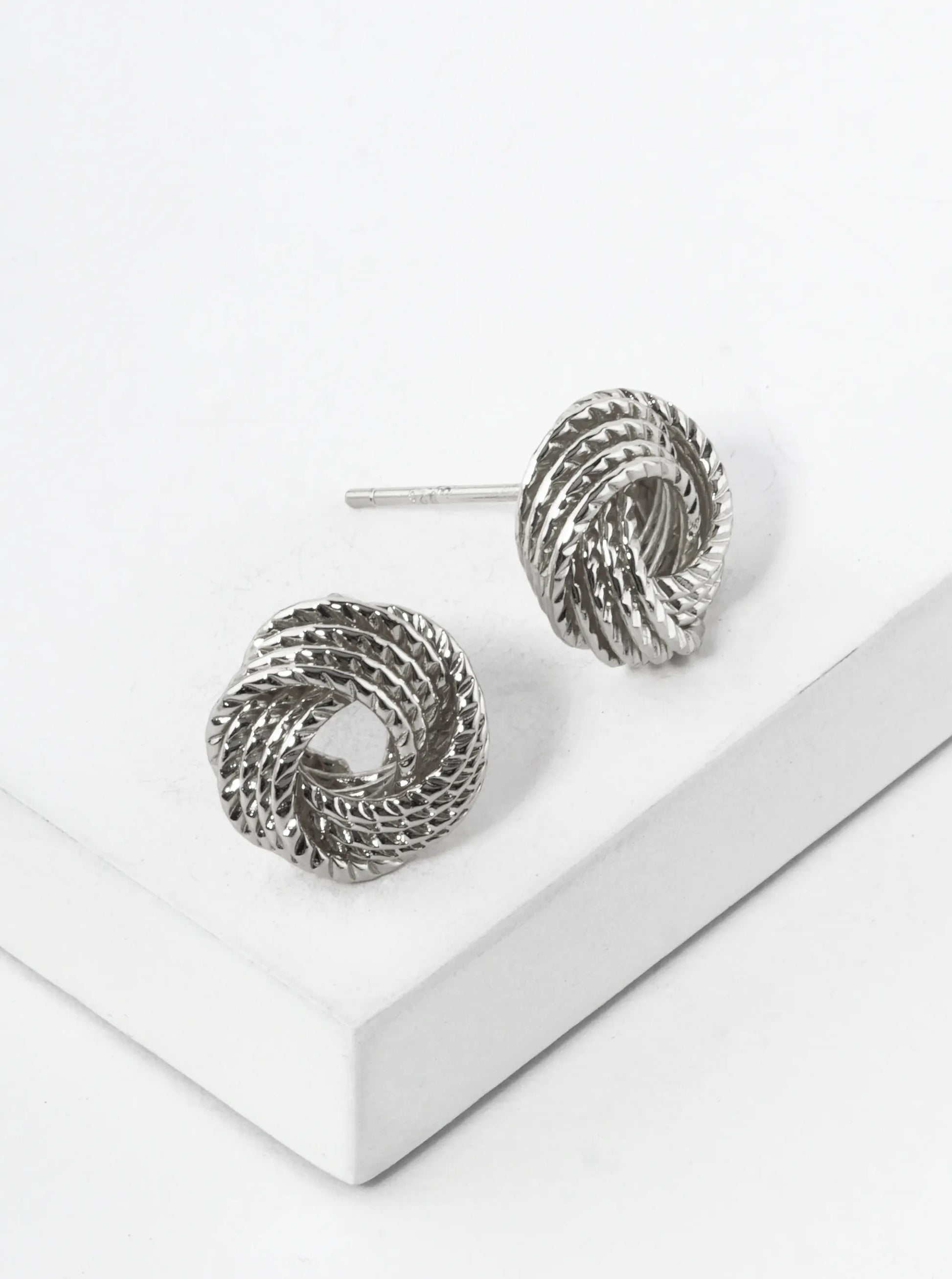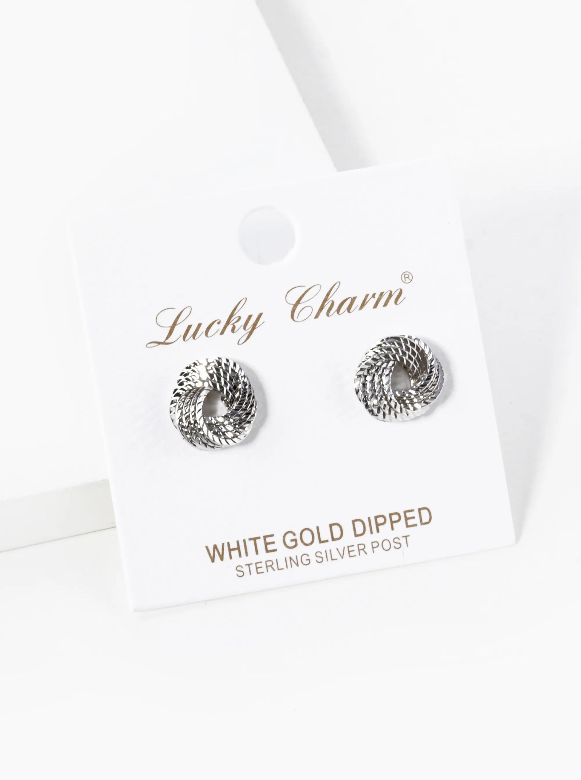 White Gold Dipped Textured 11mm Love Knot Stud Earrings