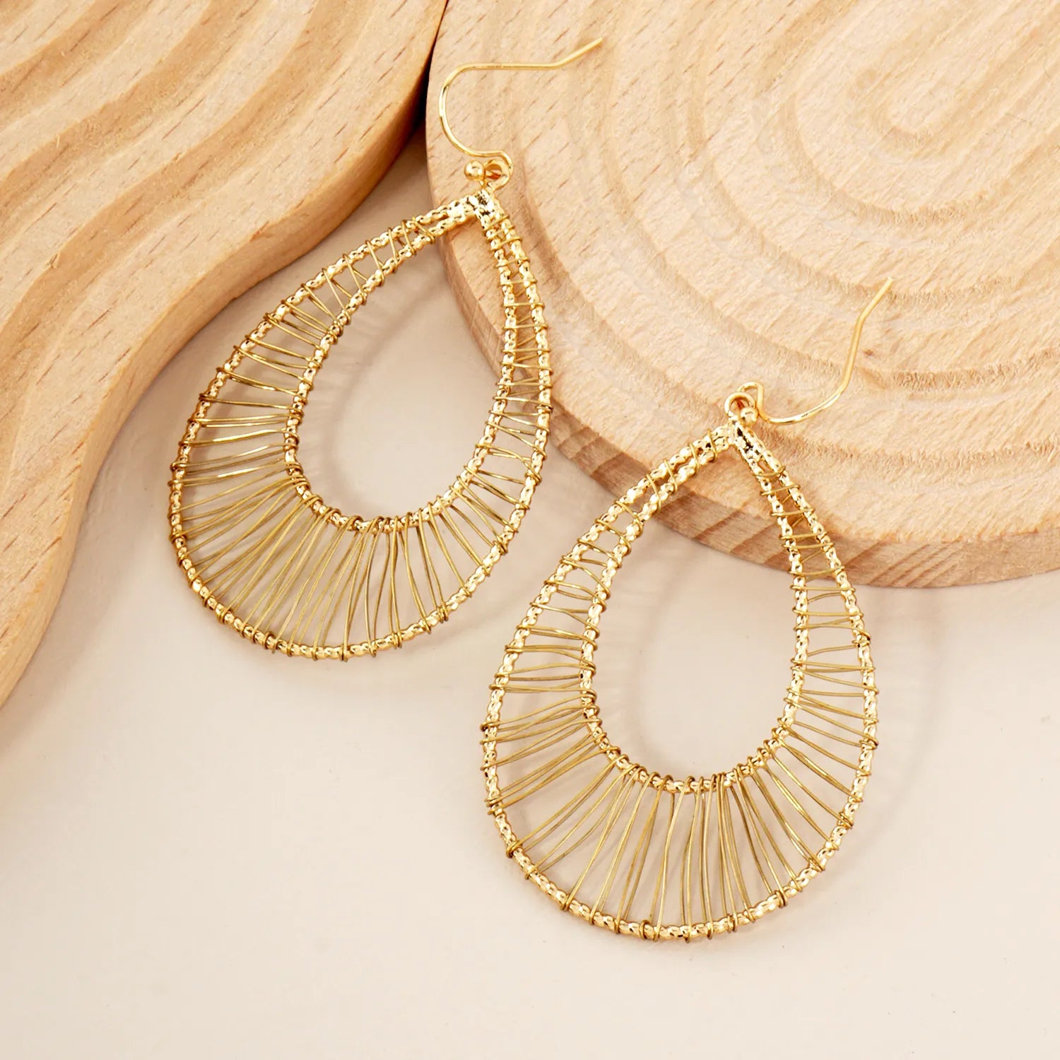 These Earrings Feature A Layered, Handcrafted Look With Two Open Teardrop Frames Accented By Fine Wire Wrapping For Added Texture And Artisanal Charm. These Earrings Deliver A Bohemian Yet Elegant Statement, Combining Fluid Shape With Lightweight Wearability For Everyday, Festival, Or Special Occasion Styling.