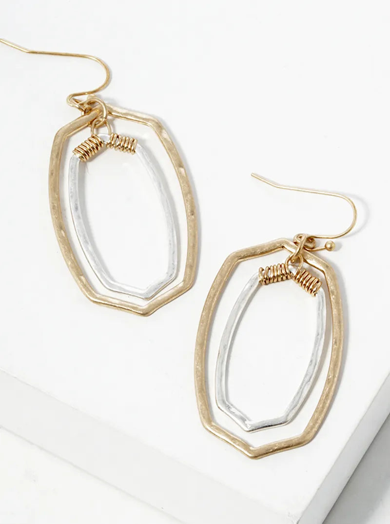 Wire Wrapped Metal Double Rounded Hexagon Dangle Drop Earrings