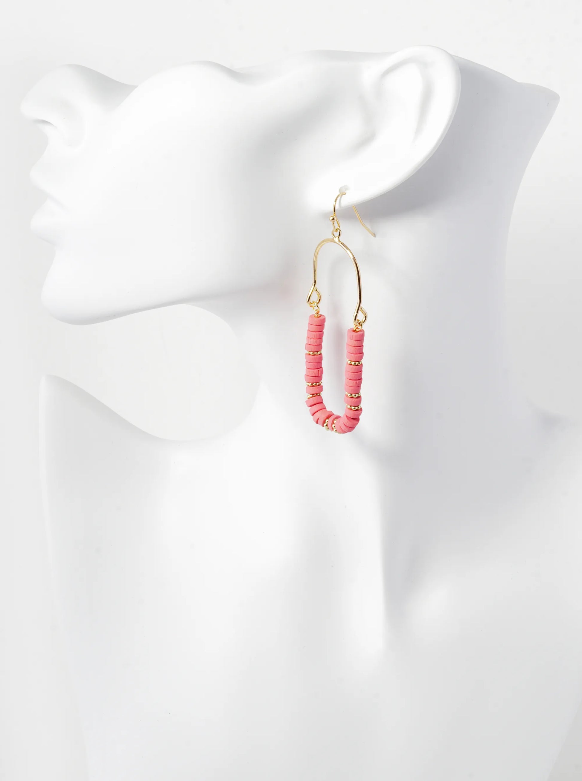 Wood Beaded Stadium Shape Dangle Drop Earrings
