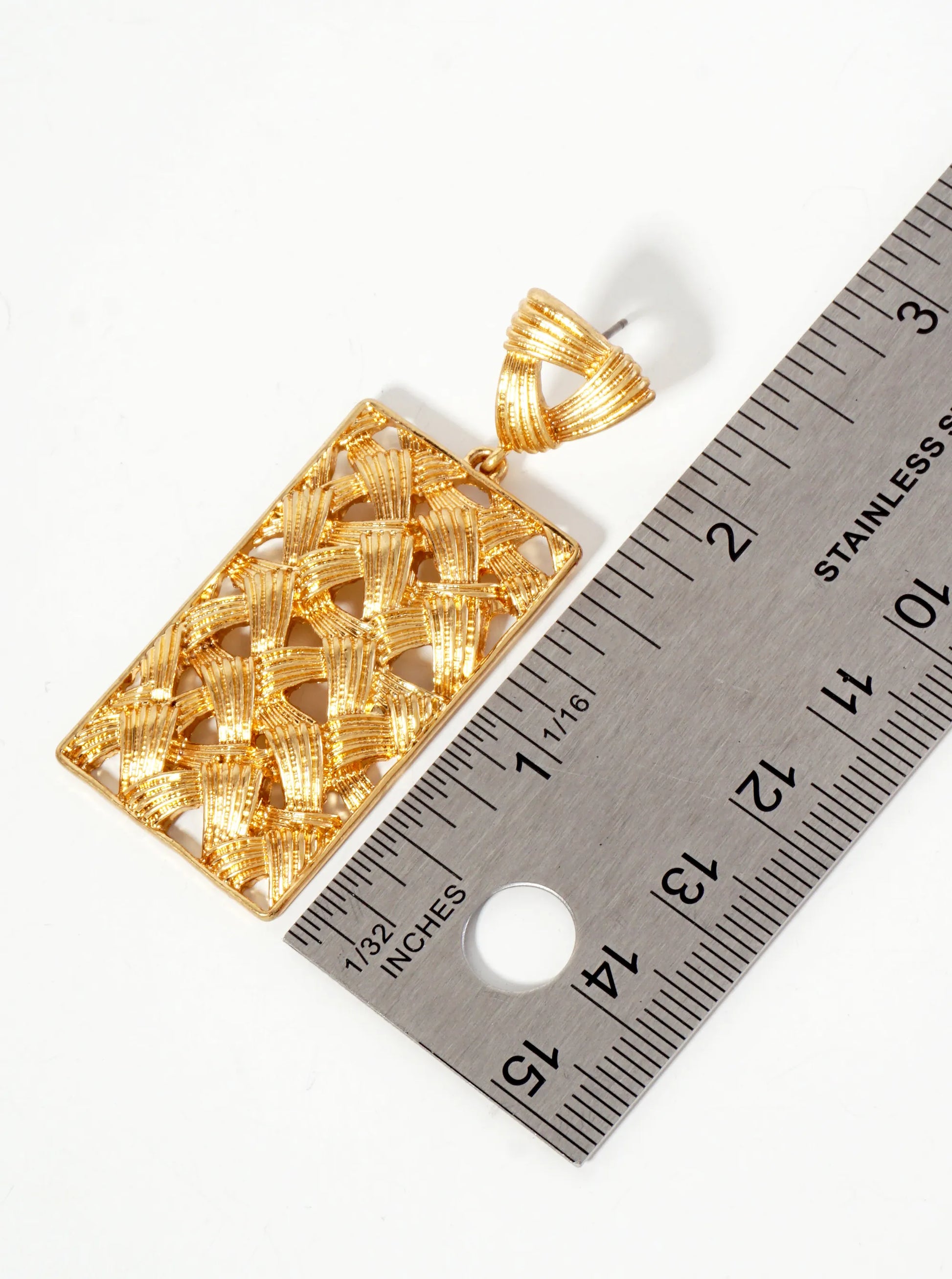 Woven Design Rectangle Drop Statement Earrings With-Titanium-Post
