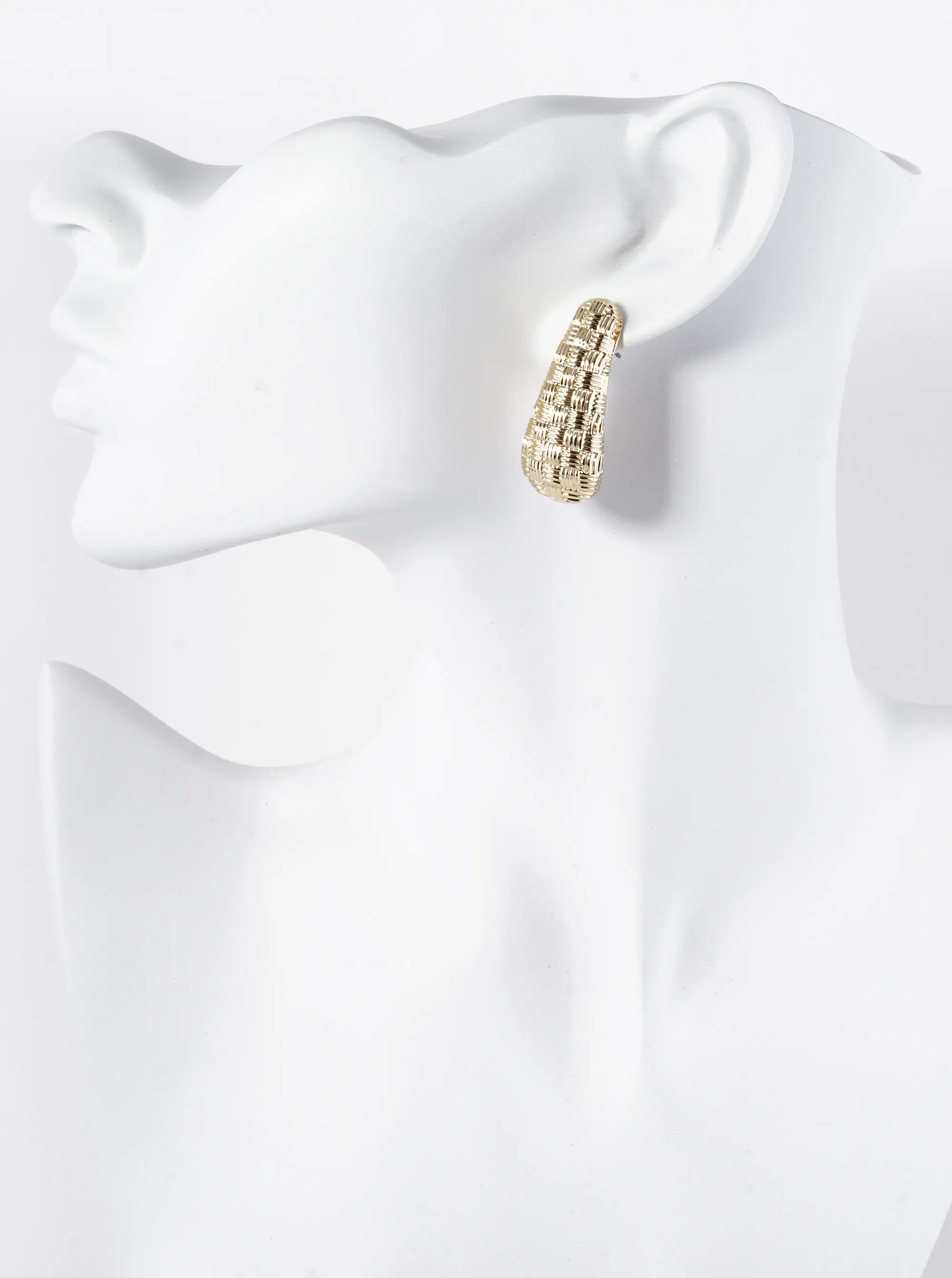 These Earrings Boast A Unique And Intricate Design Reminiscent Of Woven Textiles. With Their Teardrop Shape And Textured Detailing, These Earrings Offer A Sophisticated Yet Trendy Accent To Any Ensemble, Perfect For Adding A Touch Of Artisanal Flair To Your Look.