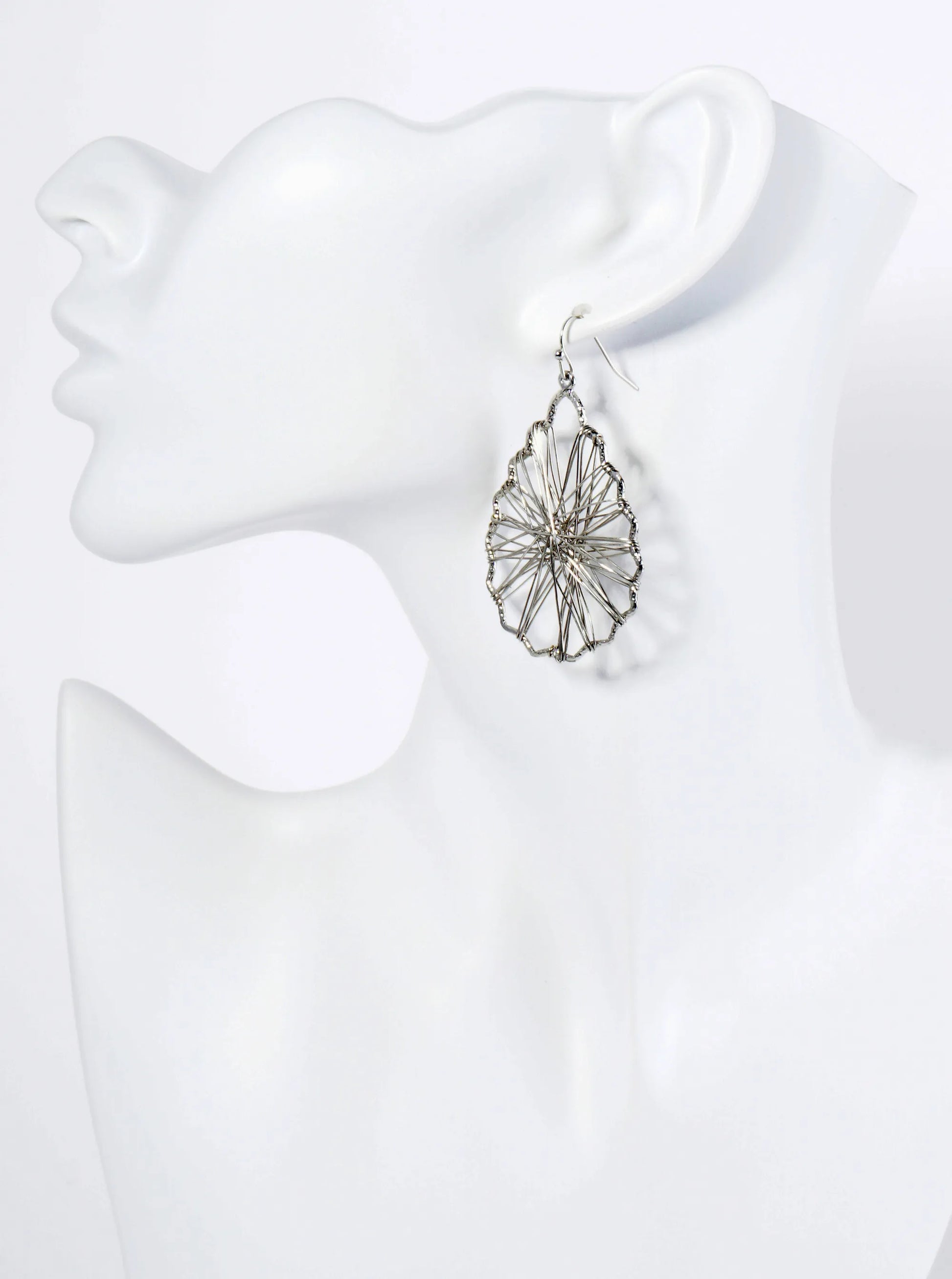 Wrapped With Wire Textured Metal Teardrop Dangle Earrings