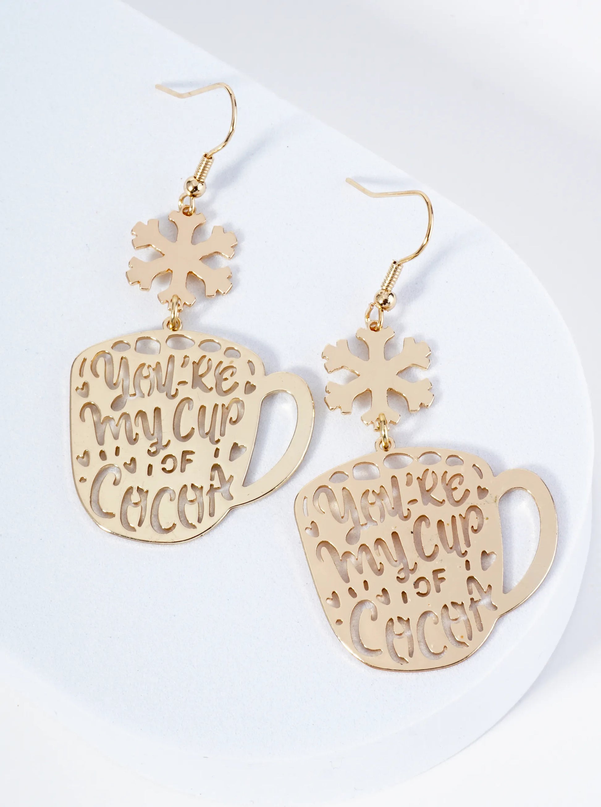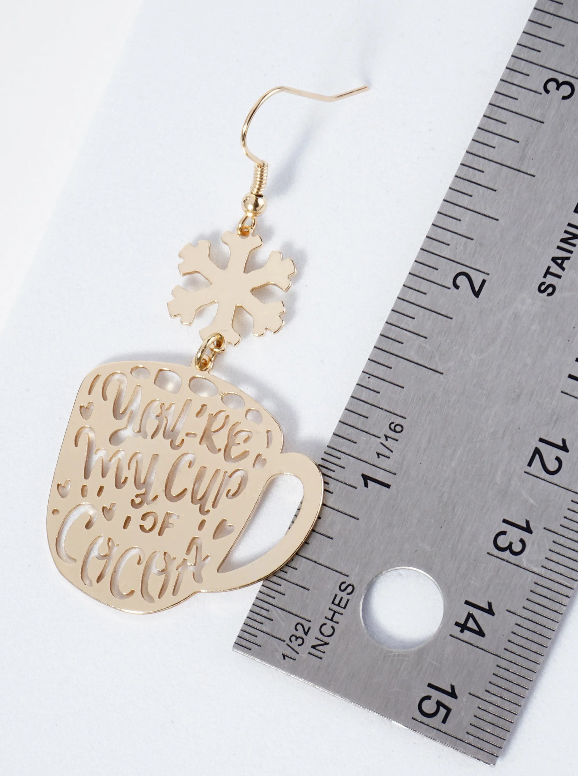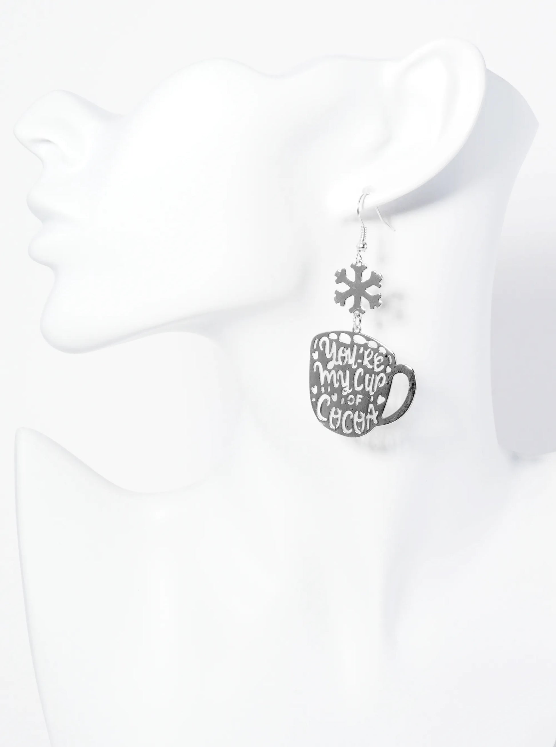 You Are My Cup Of Cocoa Cutout Snowflake Mug Drop Earrings